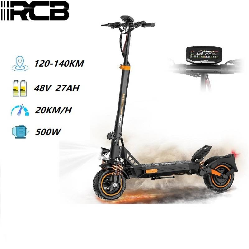 RCB D5 PRO Offroad-Elektroroller, Straßenzulassung (ABE), 500 W, 100–140 km, 27 Ah, 10-Zoll-Roller für Erwachsene, APP, doppelte Stoßdämpfung, faltbarer Pendlerroller