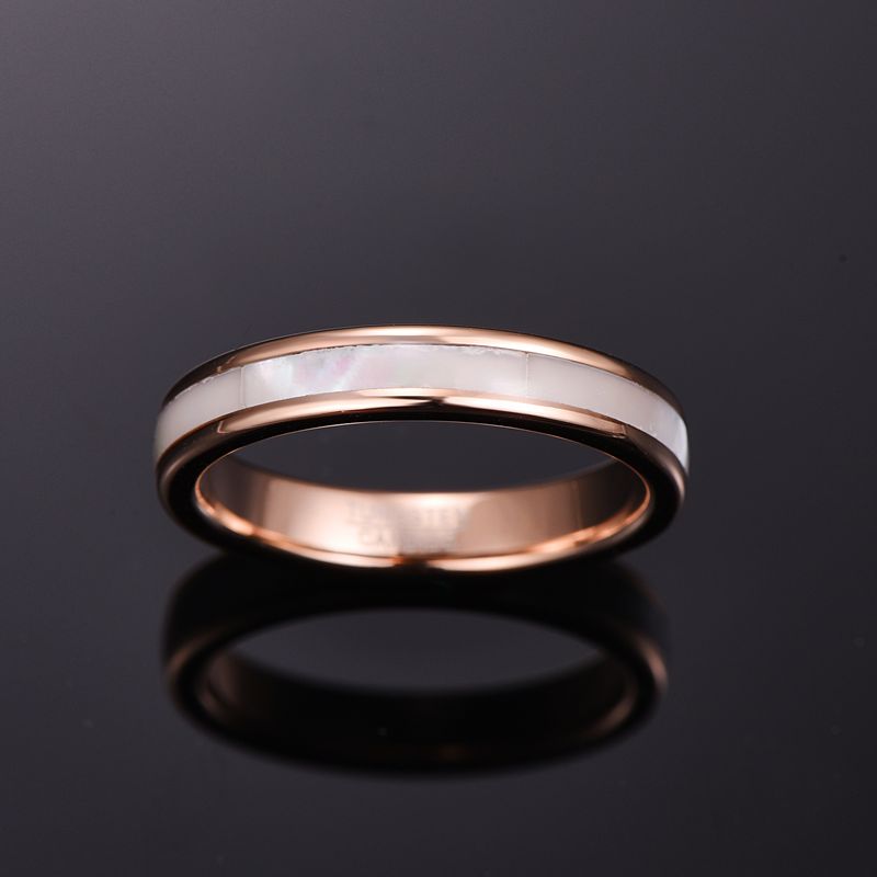 DESIGN: Rose gold plated interior mother-of-pearl shell inlaid into the center of ring surface to create an elegant and exquisite jewelry piece.