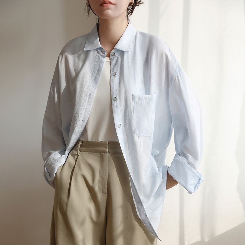 Real Shot Sommertextur Batik-Revers Langarmhemd Sonnenschutzhemd Lockerer dünner Mantel im koreanischen Stil