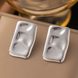 Titanium steel rectangular pleated and wrinkled earrings with exaggerated concave convex surface and golden luster for women's earrings