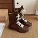 Rindsleder-Version ~ Matte Niche Martin Schnür-Boxstiefel mit runder Zehenpartie für Damen, vielseitige Westernstiefel bis zur Mitte der Wade