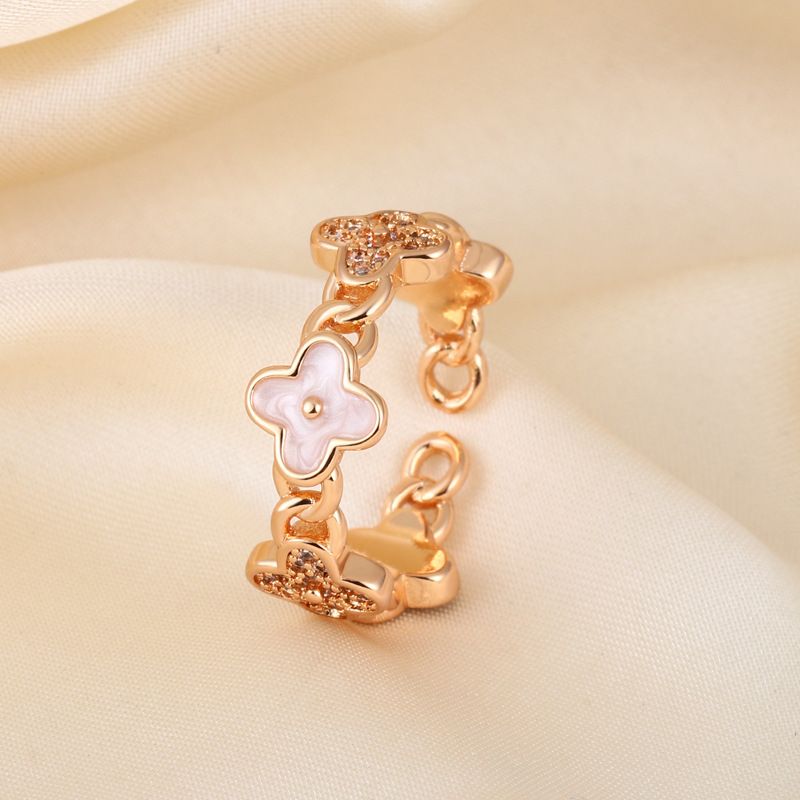 Plated Natural Mother-of-Pearl Lucky Clover Open Ring for Women, Ins Style, Light , Elegant, Non-Fading Ring