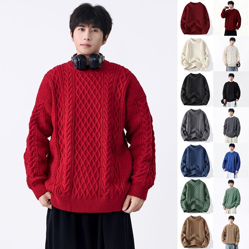 Red Sweater for Zodiac Year Autumn Winter Men and Women Thick Cable Knit Sweater Christmas Couple Sweater