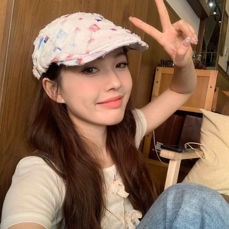 Y2K Large Head Circumference Niche Design Vintage Distressed Oil Painting Forward Hat for Women, Face Slimming Subculture Painter Hat