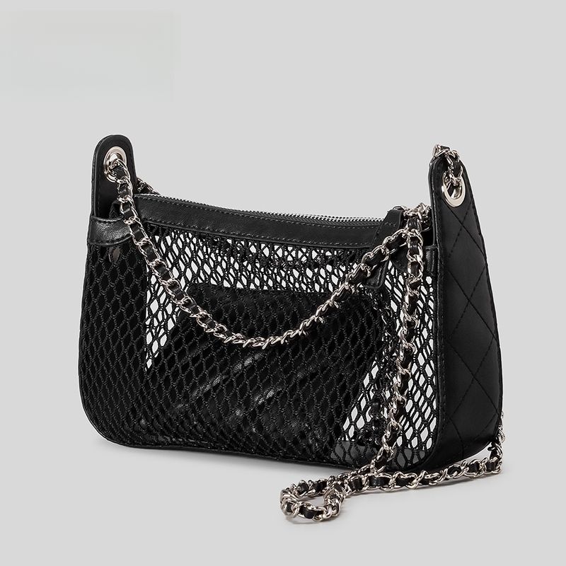 Korean Niche Design Mesh Bag Chain Hollow Woven Mesh Mother-Daughter Bag Fashion Versatile Single Shoulder Crossbody Bag for Women