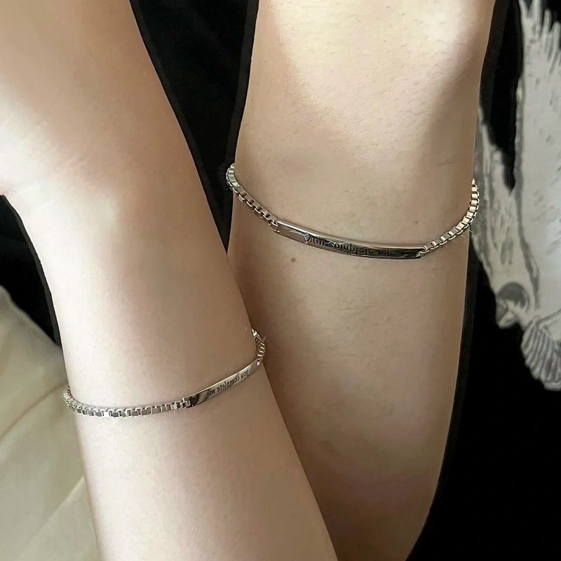 [Unshipped Instant Refund] s Pure Silver Couple Bracelet ins Niche Design Bracelet Engraved Name Valentine's Day Gift for Girlfriend
