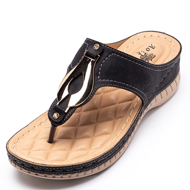 Sandalen 2023 Neue Damen-Slope-Heel-Metallschnalle Klemmfuß Fischgräten-Hausschuhe