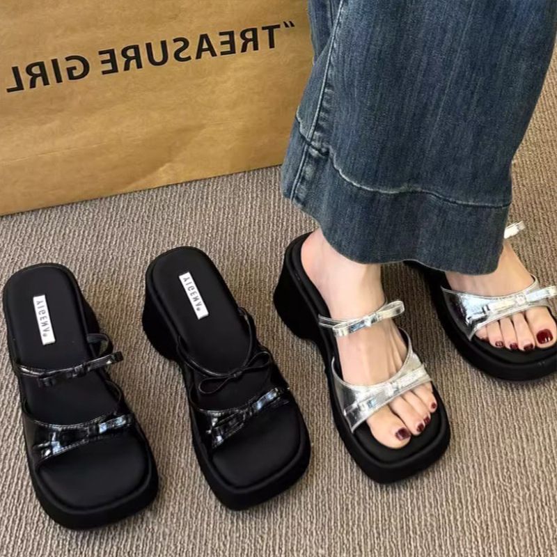 Platform Fairy Stunning Sandals for Women Summer Internet Celebrity Bowknot Skirt Matching Roman Shoes Slippers 2025 New Outdoor Wear