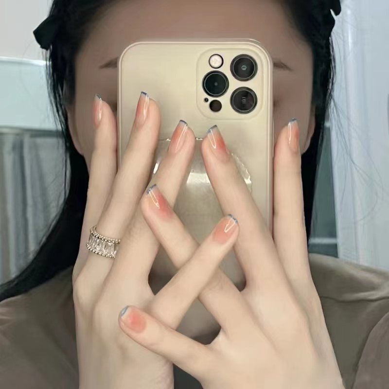 Sanfter Nebel Blau Französisch Abnehmbare Kurze Farbige Puder Rouge Mädchen Atmosphäre Nagel Patch