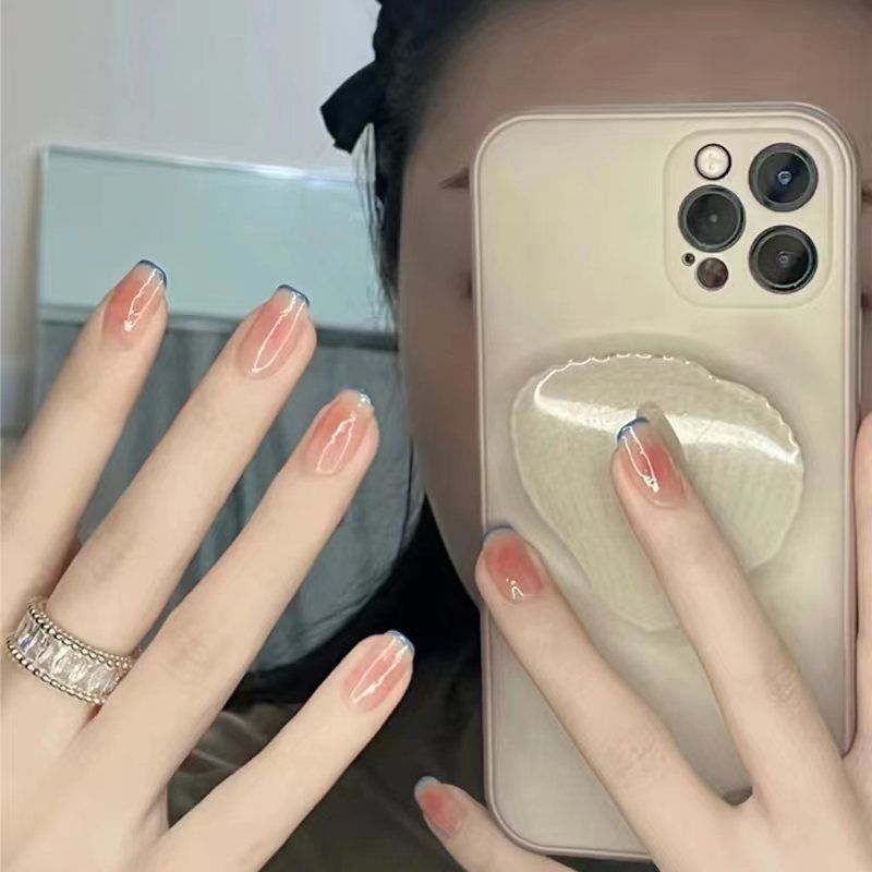 Sanfter, nebelblauer, französischer, abnehmbarer, kurzer, farbiger Puderrouge-Nagelaufnäher mit Mädchenatmosphäre