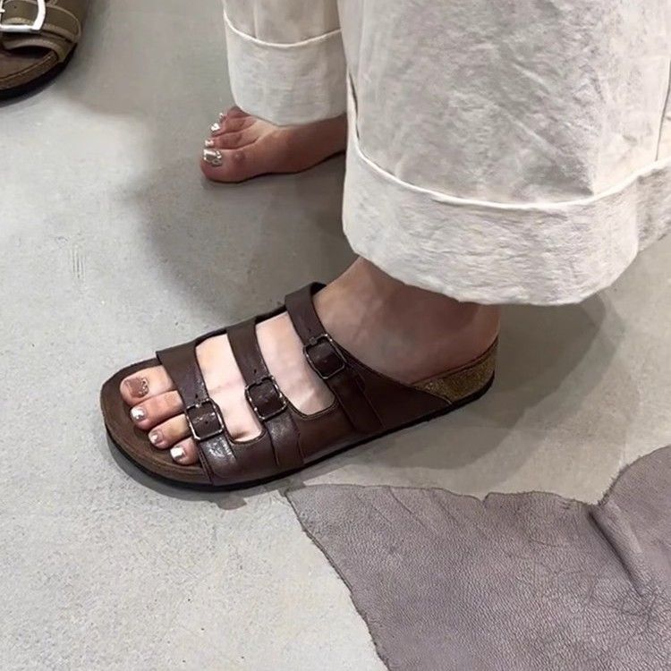 Schaffell-Version ~ Echtes Leder Schnalle Slip-On Damen Flach Vielseitig Lazy One-Step Outdoor Neue Sandalen