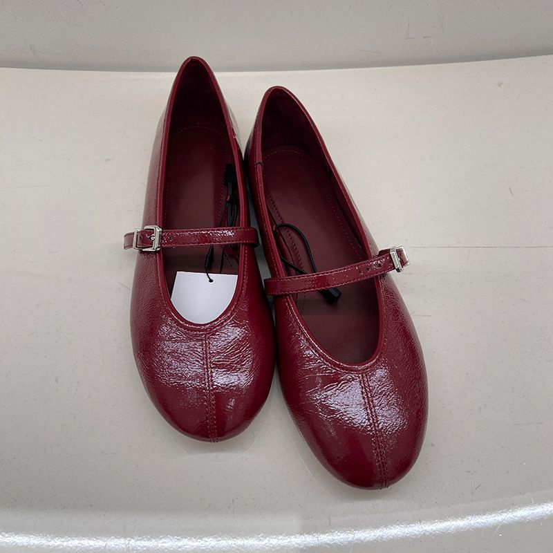 Schaffellversion ~ Za Mary Jane für Frauen, echtes Leder, ein Riemen, flache Öffnung, flache Schuhe, vielseitige kleine rote Arbeitsschuhe_voghion.com