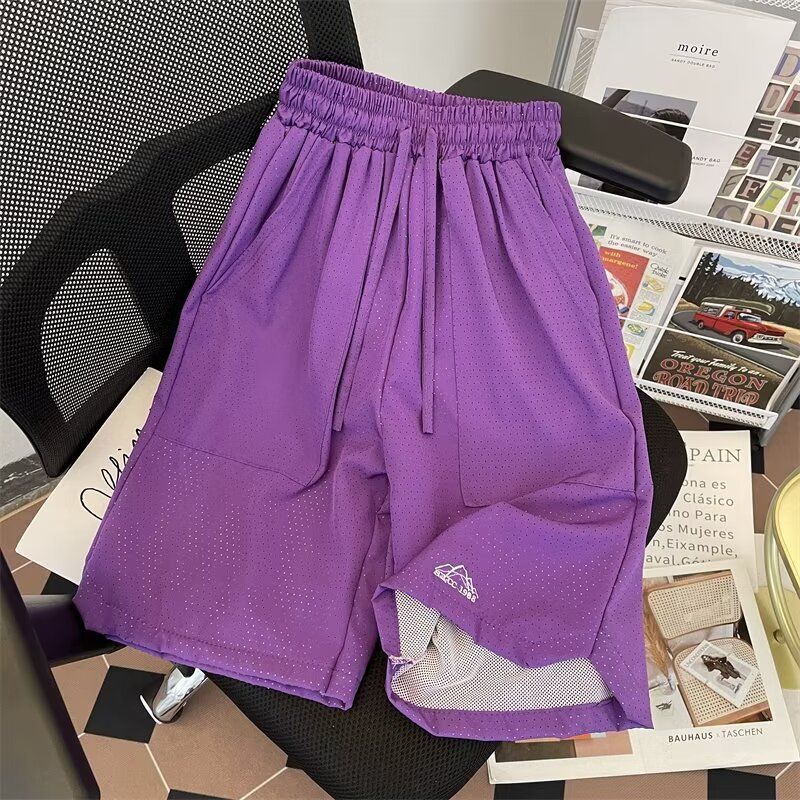 Simple solid color casual shorts for women's summer mountain style sports, quick drying, loose and tight waist, slimming and wide leg five inch shorts