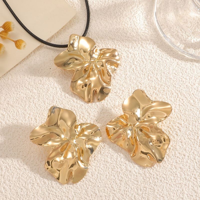 Schmuckset, Goldschmuckset, Damenschmuckset, extravaganter Stil, plissiertes Metall, unregelmäßige Ohrringe, Halskette, modisches, einzigartiges zweiteiliges Schmuckset