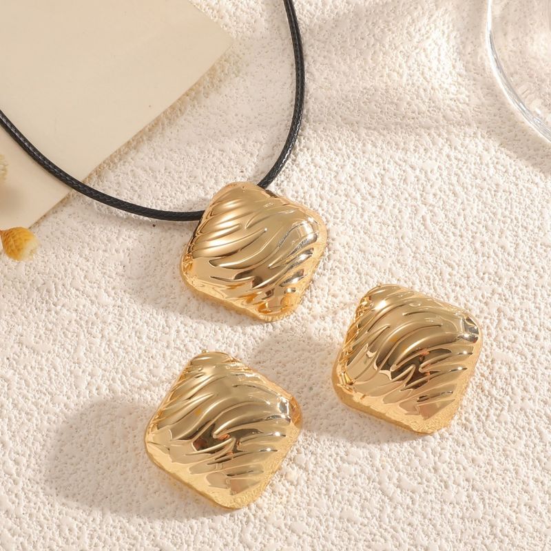 Schmuckset Goldschmuckset Damenschmuckset Personalisiertes rechteckiges Design Plissierte Halskette Ohrringe Schmuck Metall Elegante Accessoires Zweiteilig
