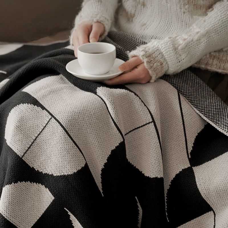 Black and white blanket, simple and high-end color blocked sofa blanket, medieval estate blanket, office nap blanket, and cover blanket