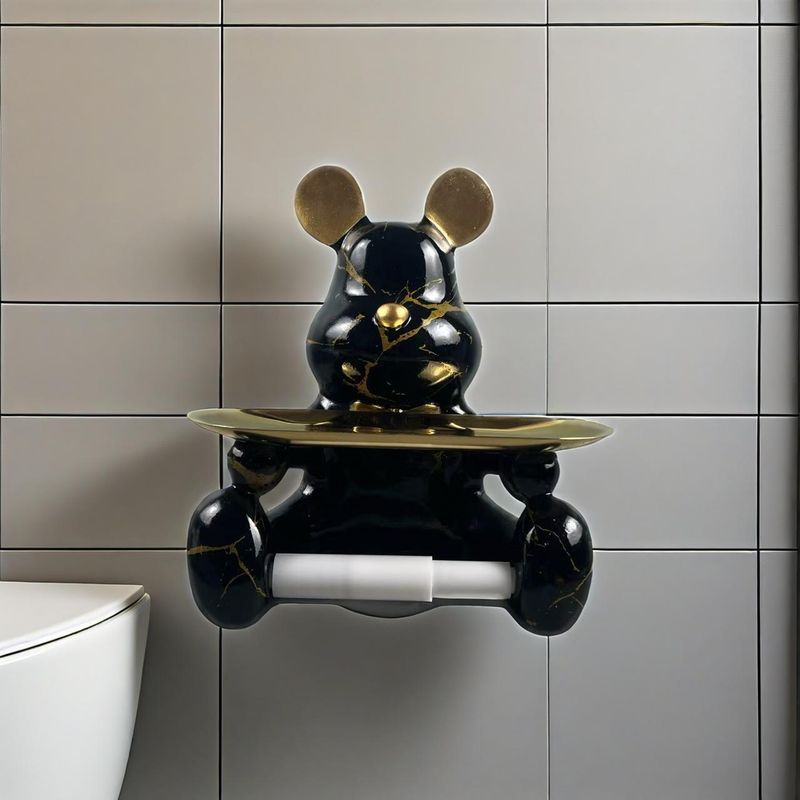 Black Gold Bear Entrance Toilet Roll Holder Storage Tray Rack Ornament Resin Craft Light Luxury Home Decor Soft Decoration