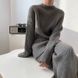 Set aus Strickpullover und Hose mit weitem Bein für Damen – Pullover mit geteiltem Saum und hoch taillierter Hose, minimalistisches Büro- und Freizeitoutfit (Einheitsgröße)