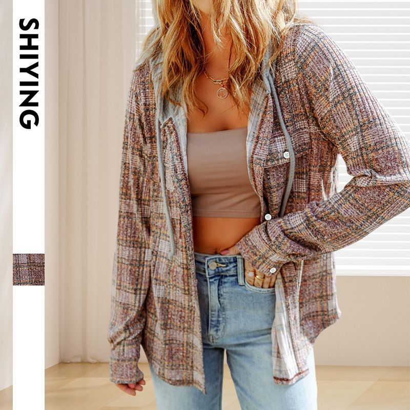 Shiying women's versatile shirt new plaid long sleeved printed autumn and winter casual commuting woolen coat