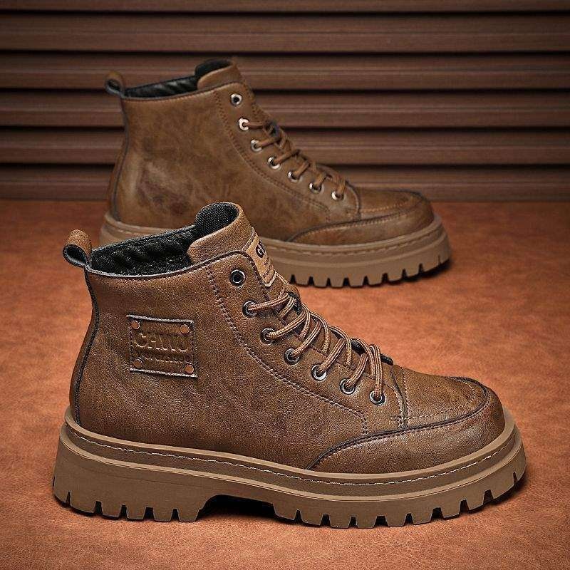 ShoeGlobe Martin Autumn Wasserdichte Mid-Top-Sportschuhe aus Leder für Herren, Retro-Stil, britische Outdoor-Wander- und Arbeitsstiefel