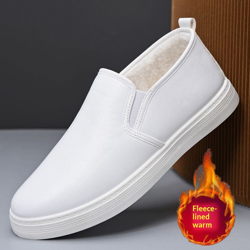 ShoeGlobe Herren-Winterschuhe mit Fleecefutter, warm, kältebeständig, weiß, lässig, weiche Sohle, wasserdicht, rutschfest, für Krankenhaus und medizinische Arbeit