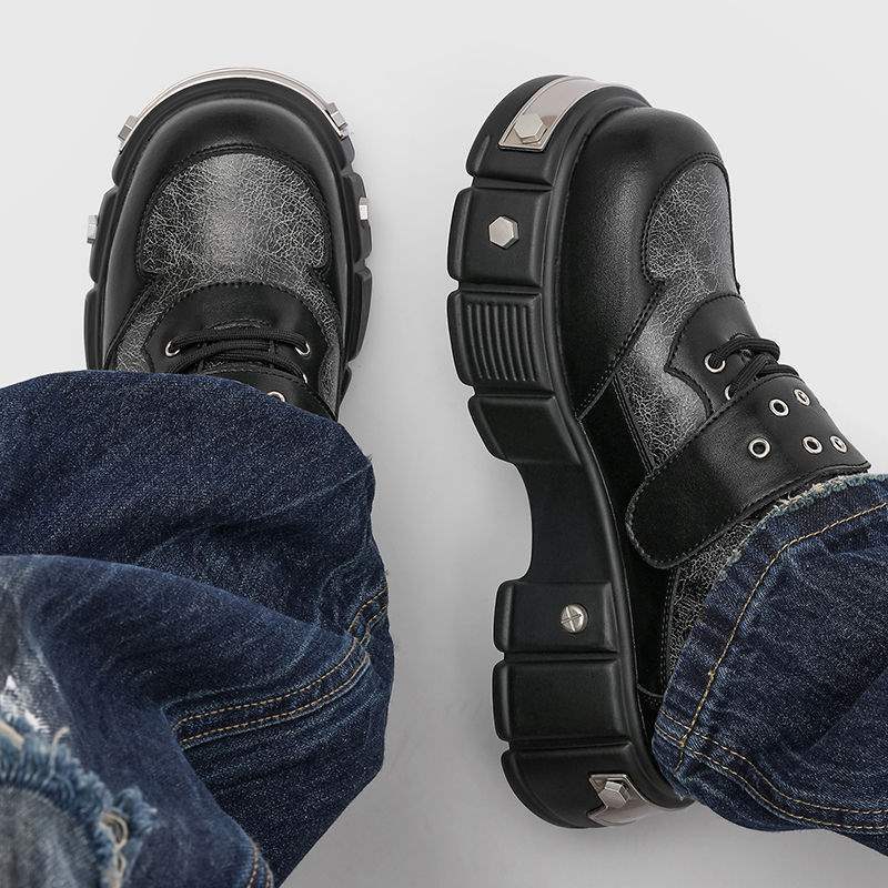 ShoeVault Cleanfit Dickbesohlte Derbys für Herren, Plateauschuhe aus Leder im britischen Stil mit Nischen-Schaumsohle, lässiger koreanischer Stil