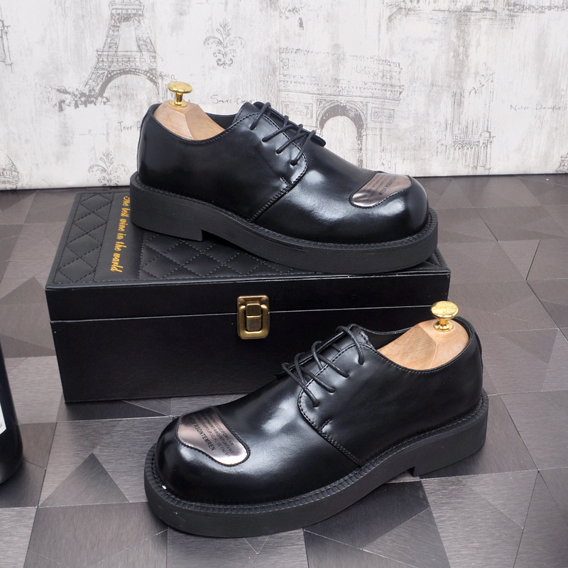 ShoeVault Neue Business-Schnürschuhe für Herren, Derby-Schuhe mit runder Zehenpartie, dicker Sohle und Plateau, die die Körpergröße erhöhen – ideal für Hochzeiten.