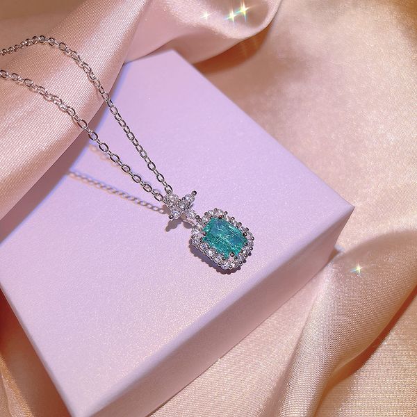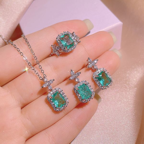 Sier Clover Designer Ohrringe Halsketten Frauen Mädchen Blume Kette Halsband elegant blau Stein CZ Zirkon Kristall Diamant