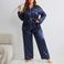 Damen Nachtwäsche Eisseide Dünne Langarmhose Strickjacke Seide Übergröße Sexy Homewear Set