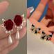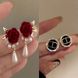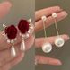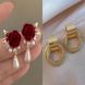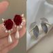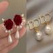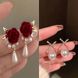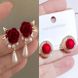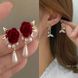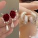 Silver Needle Autumn Winter Wine Red Velvet Rose Pearl Earrings for Women Elegant High-end Feel 2023 New Earrings