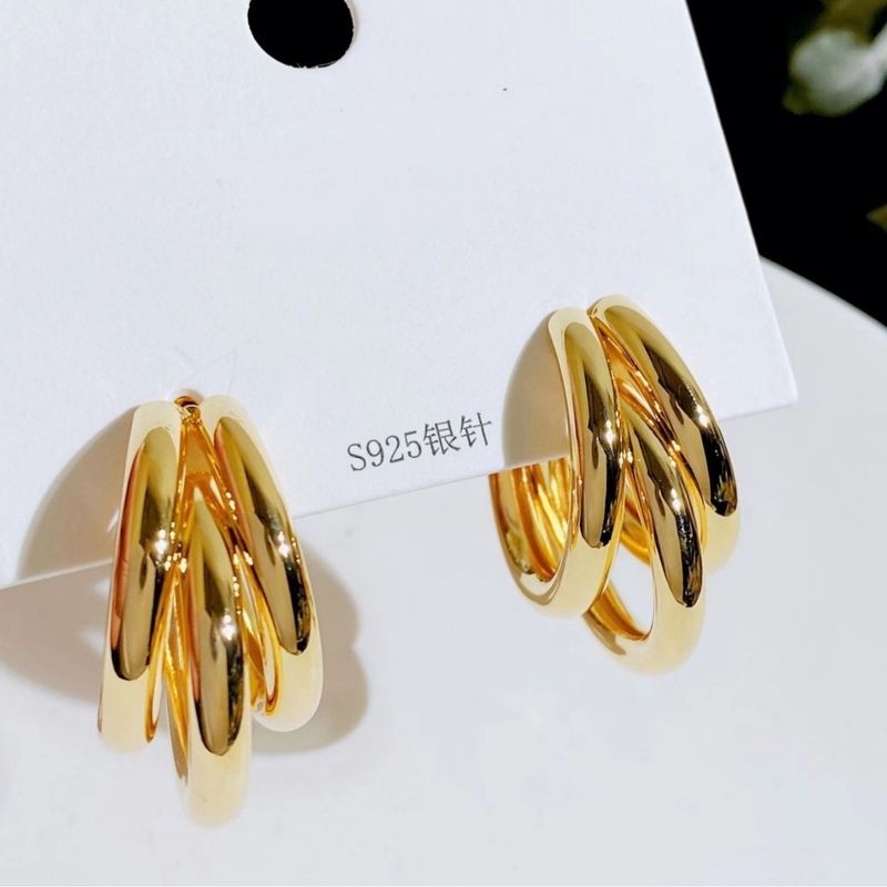 Silberne Nadel im minimalistischen Stil, einfache unregelmäßige mehrschichtige Creolen, Metallmanschetten, Ohrschmuck