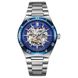 Skelett Mechanische Uhren Blau Römisches Zifferblatt Uhr Für Männer Automatische Herrenuhren Luxusmarke Uhr Gummi Und Ledergürtel