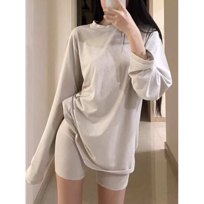 skims2025 Spring Loose Long Sleeve T-Shirt Women Kardashian Two-Piece Set Homewear Casual Fashion Set Women