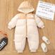 Weicher Baby-Winter-Strampler aus Baumwolle mit Fleecefutter – Unisex-Overall mit langen Ärmeln und Kapuze für Neugeborene und Kleinkinder (0–12 Monate, 80 cm und darunter)