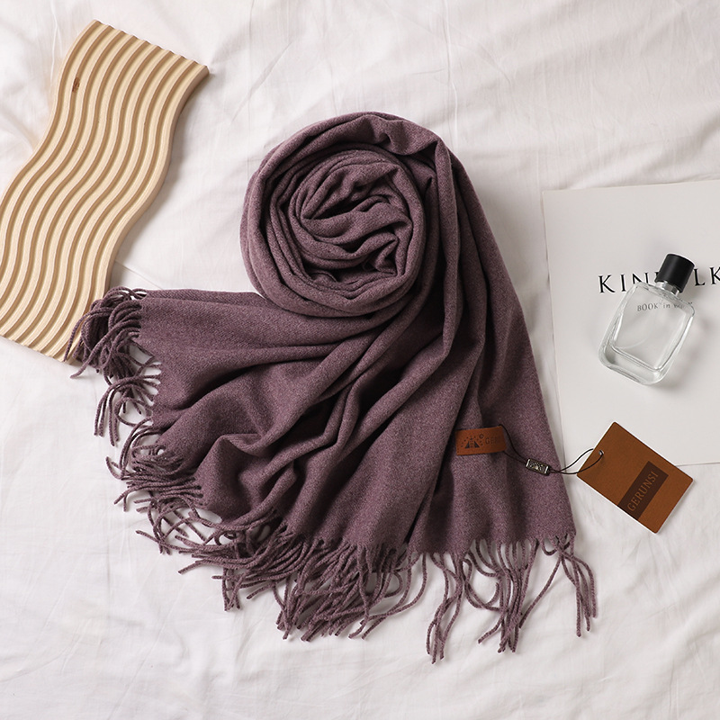 Einfarbiger Damen-Schal mit Widerhaken, 300 Ke Ge Runsi, Kaschmirimitat, einfarbig, verdickter Hals, einfarbig, Herbst und