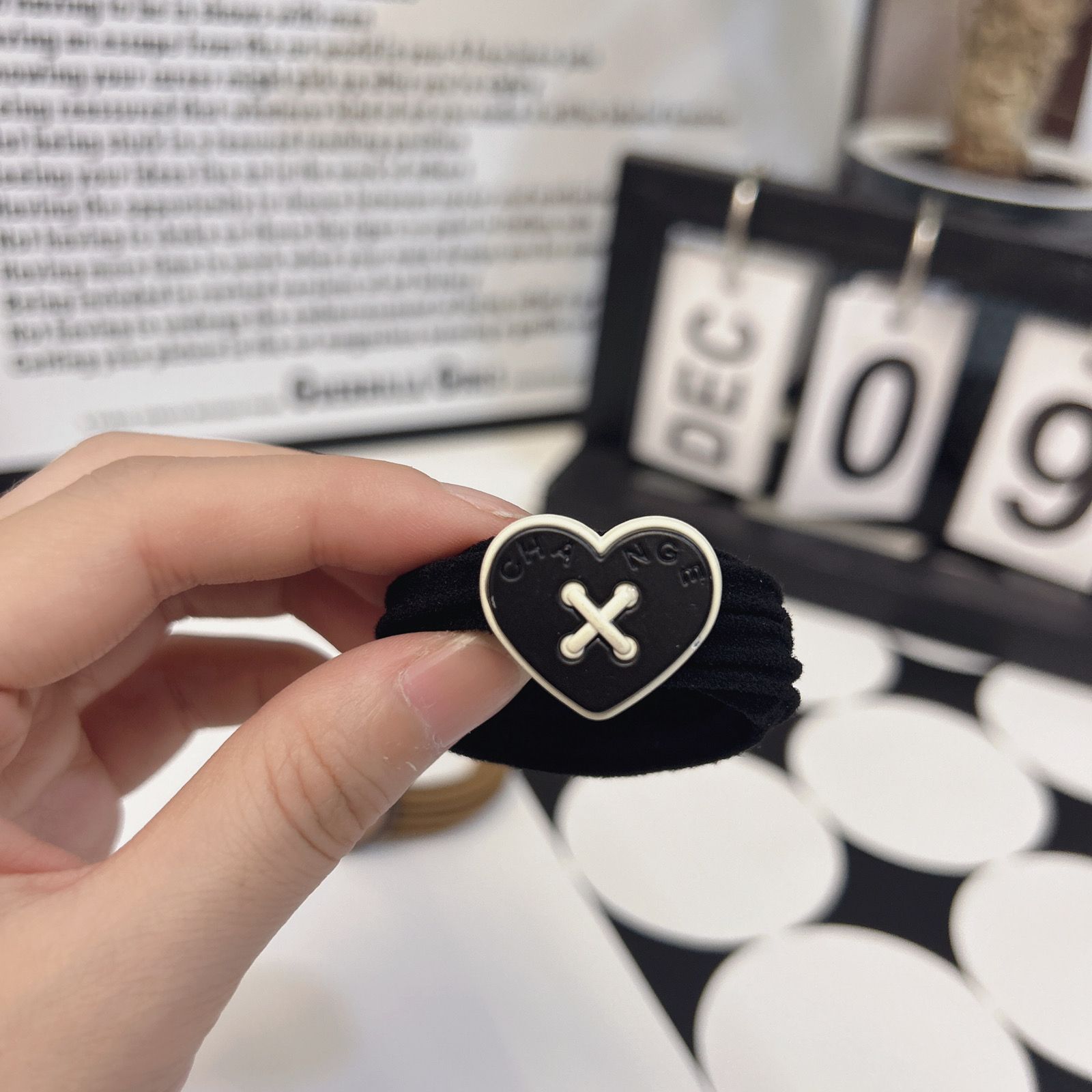 【 Quick Refund 】 Summer High Elastic Love Bold Letter Headband, Net Red Towel Ring, No Trace Hair Accessories, Ball Head Tie, Horse Tail Hair Rope