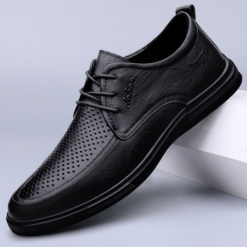 Leather Shoes Summer Formal Breathable Sandals Business Casual Soft Sole Men's Genuine Leather Hollow Dad British Style Hole Shoes
