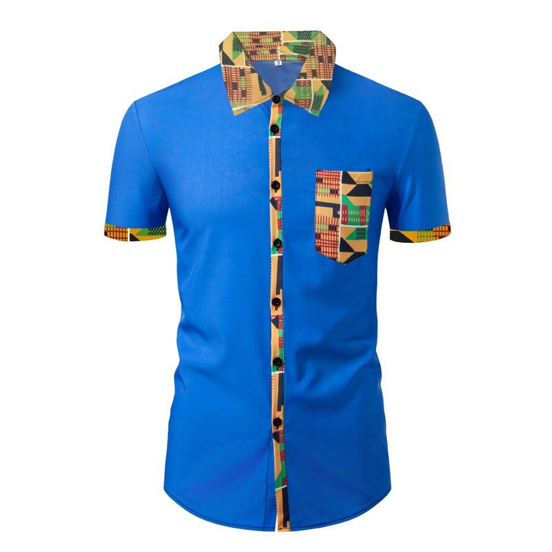 Sommer Herrenmode Lässiges 3D-Digitaldruck-Taschen-Umlegekragen-Kurzarmhemd mit Vier-Wege-Stretch für Herren