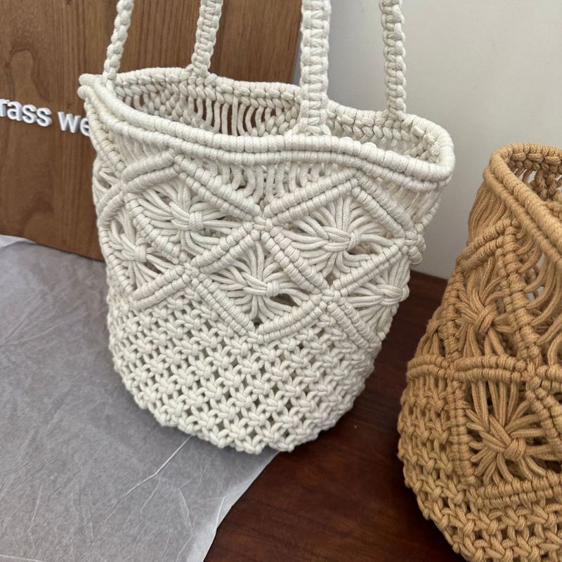 Sommer Neue Handgewebte Handtasche Baumwolle Hohl Künstlerische Eimer Für Frauen Mode Einfache Nische Umhängetasche