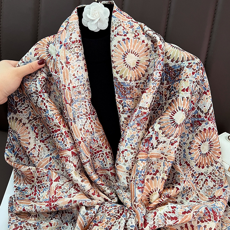 Summer New Little Chrysanthemum Beautiful Brocade Extended Scarf for Women's Air Conditioning Outside the Room with Shawl Beach Sun Protection Dual purpose Scarf