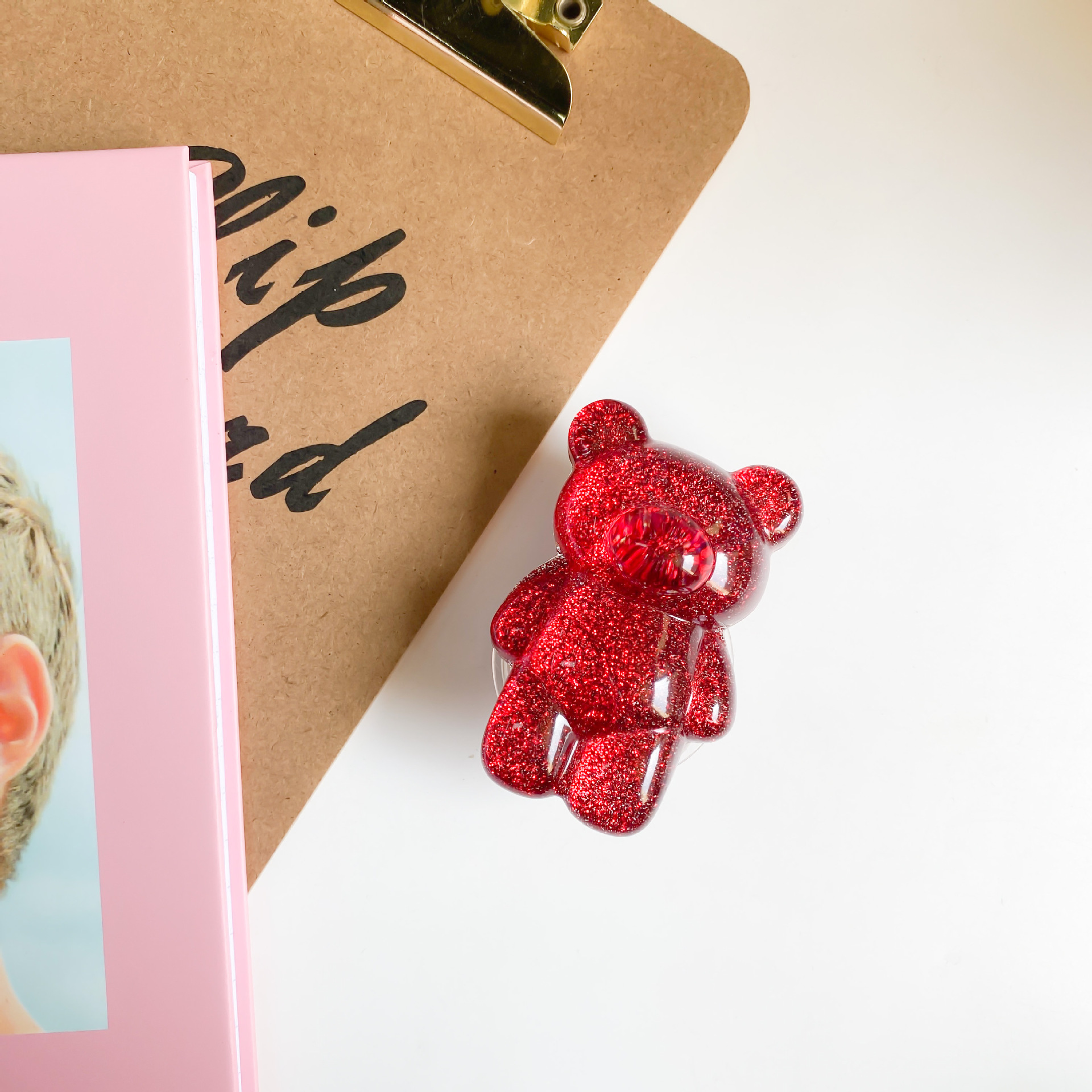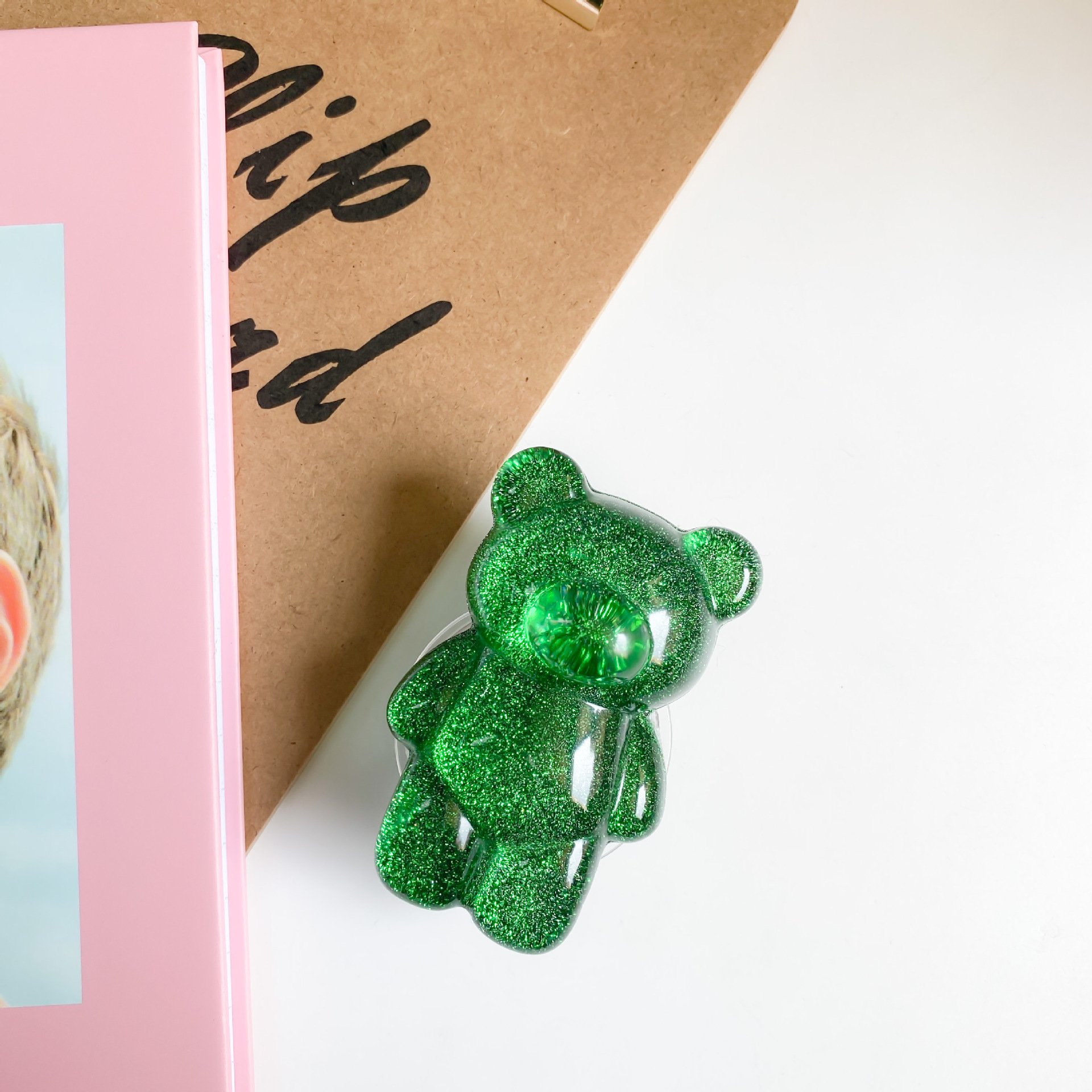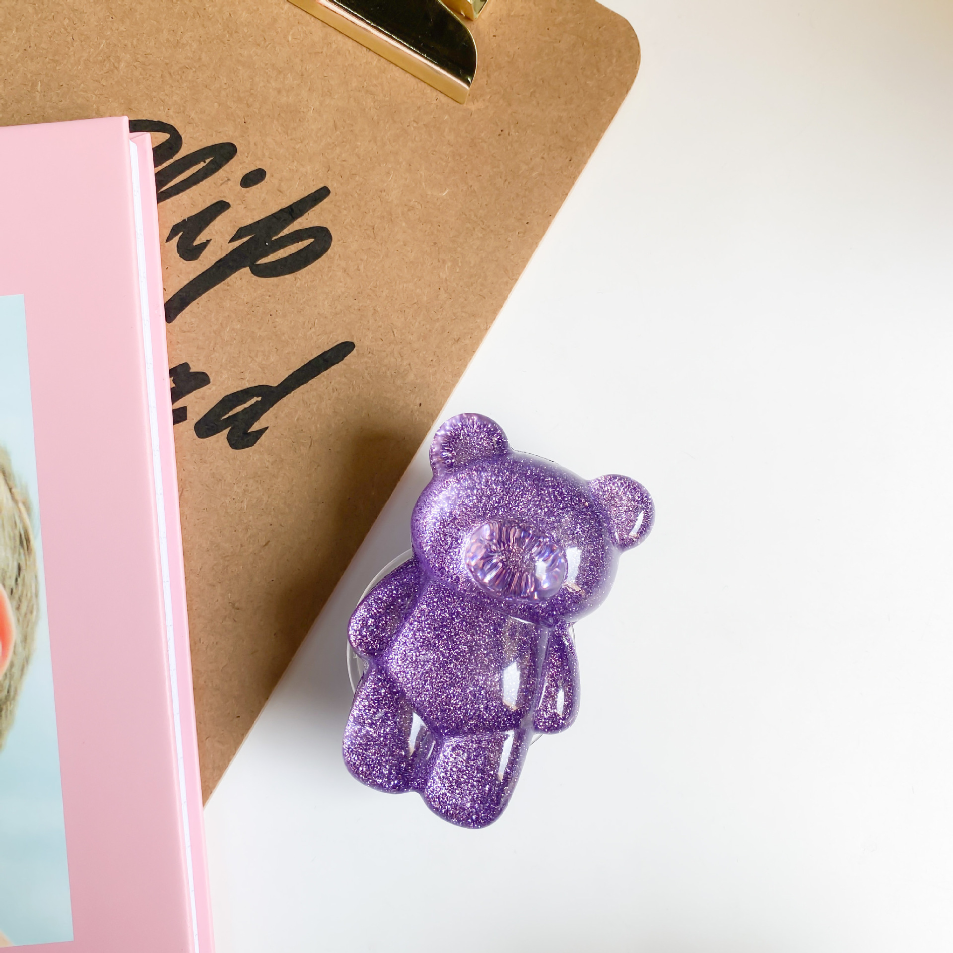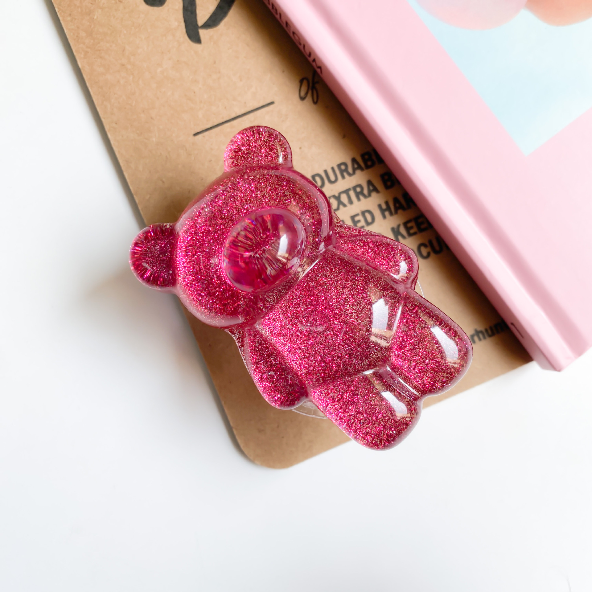 Funkelnder rosa Bär Cartoon niedlicher kreativer Telefon-Airbag-Halter, japanischer und koreanischer, vereinfachter, selbstklebender, skalierbarer Desktop