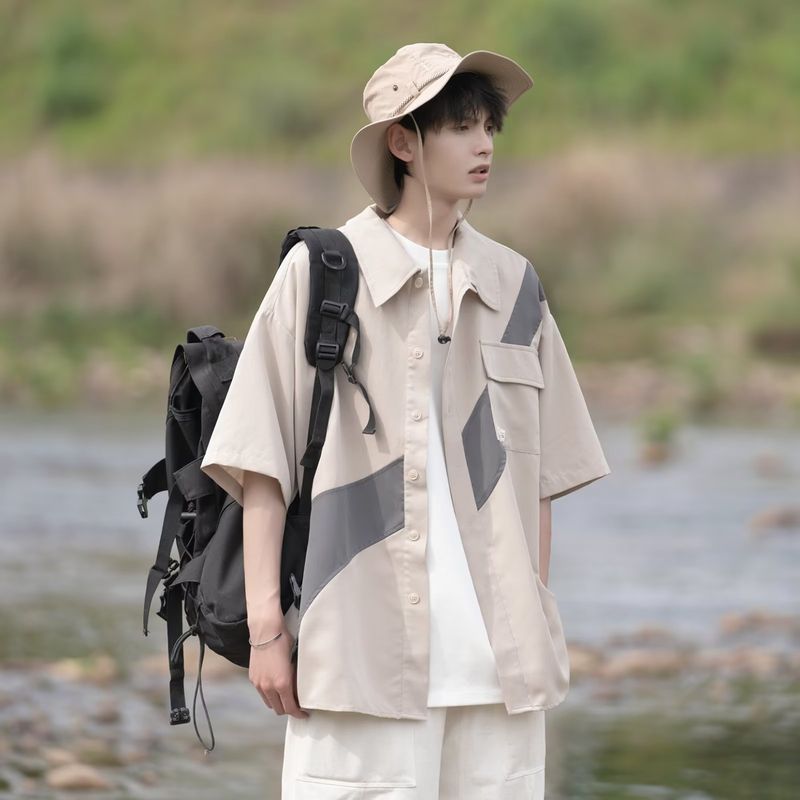 【 Spezial 】 Sommer-Kurzhemd für Herren, lässiges, locker sitzendes Hemd, dünne, drapierte Arbeitsjacke, halbärmeliges T-Shirt