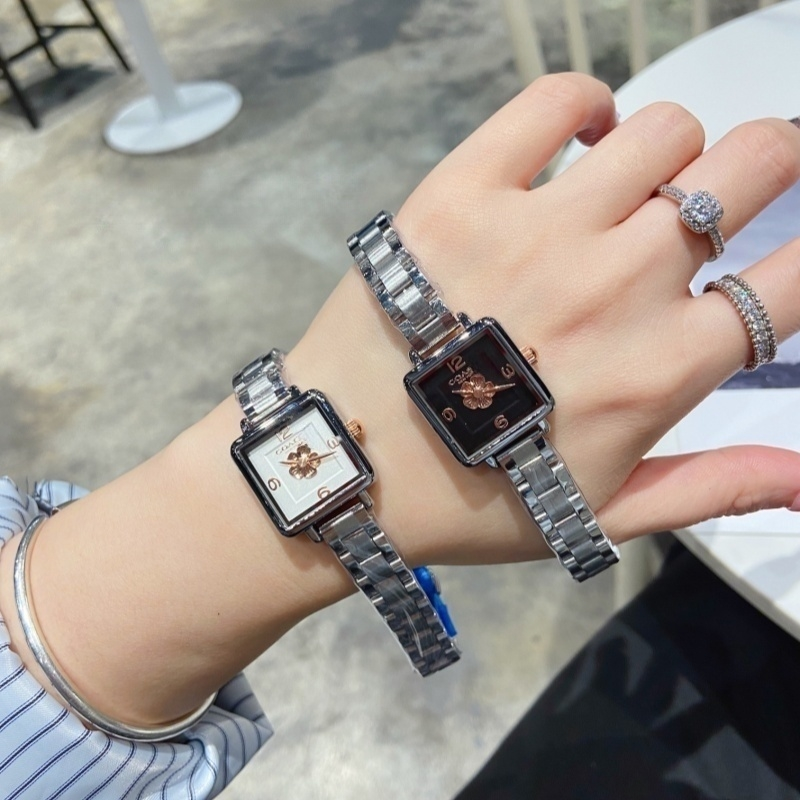 Stahlgürtel, neues kleines quadratisches Design, Ganzstahlgehäuse, 369 wörtliches Design, Bedeutung glückverheißend, Größe 22 mm, Dornschließe, exquisite Verarbeitung