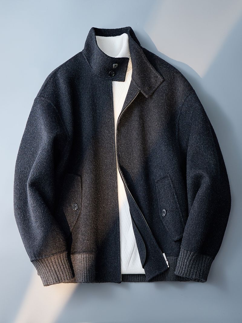 Stehkragen Doppelseitiger Wollmantel Herren High-End Kurze Lockere Lässige Leichte Luxusjacke_voghion.com