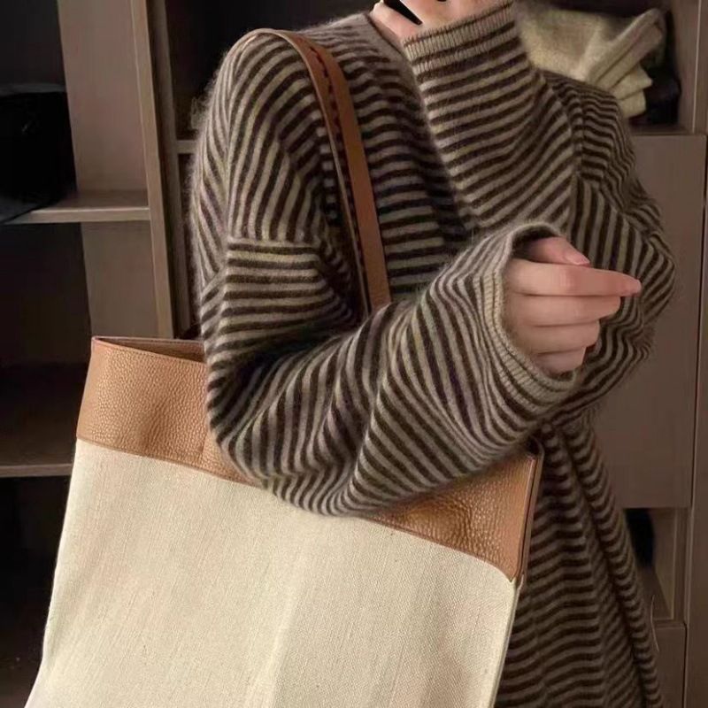 Stil Pullover Gestreift Gestrickt Für Frauen Herbst Winter Mittellangen Inneren Passenden Mantel Basis Wolle Langes Kleid