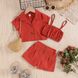 Stilvolles 3-teiliges Kurzarm-Outfit für Mädchen – Tanktop aus gewaschener Baumwolle + Hemd mit Kragen und Shorts (90–130 cm, Mohnrot/Sonnenblumengelb)