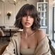 Synthetische Clip-in 10 Zoll Perücke Weibliche Pony Kurze Lockige Haare Mode Weibliche Gruppe Braun Temperament Perücke Vollen Kopf Set