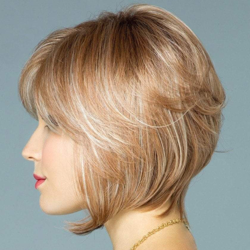 Synthetische Perücke für Damen, kurzes, glattes Haar, gemischte Farben, synthetische Faser, Wickelgesicht, schräger Pony, Perücke, Hochtemperatur-Seide, Rosengeflecht, komplettes Set