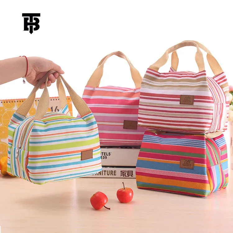 TB BHULAMTE Damen Luxus Canvas Lunchbox, gekühlt, modisch gestreift, mit Reißverschluss, isoliert, versandkostenfrei, Designer