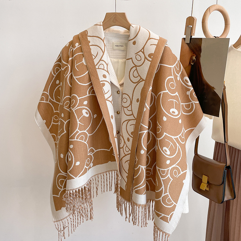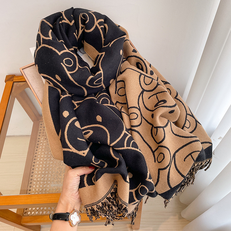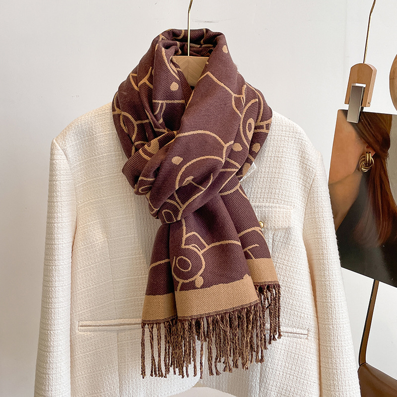Teddybär-Kaschmirimitat-Schal für Damen im Herbst und Winter, Schal für modisches und warmes Studentenhalsband